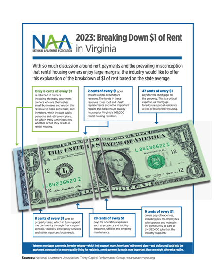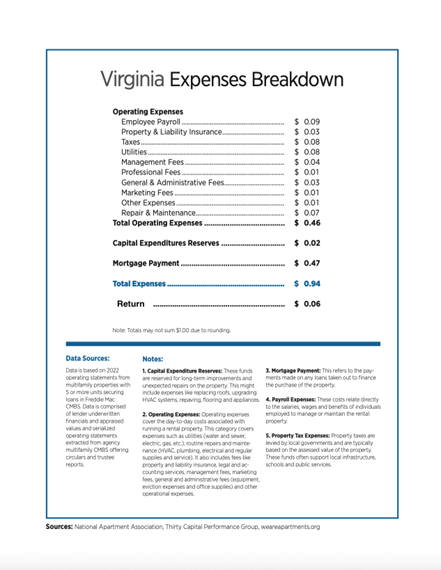 - ^ Virginia: Where Does $1 of Rent Go? Thirty Capital Performance Group and the National Apartment Association. 2023.
